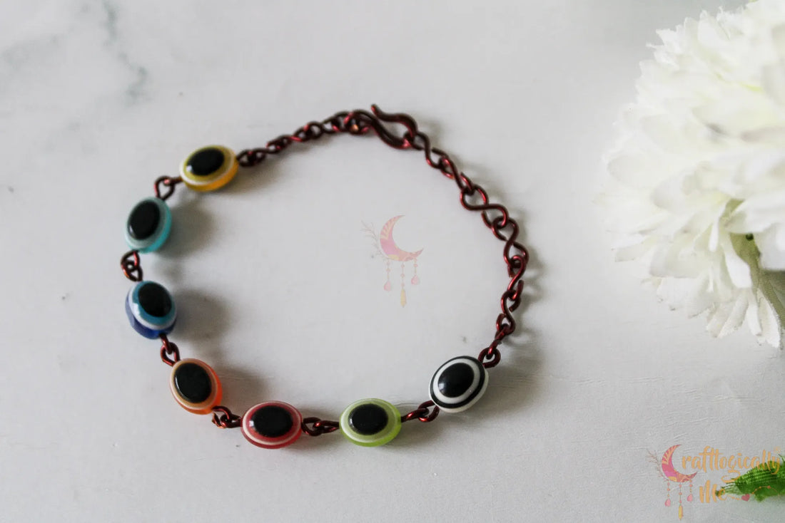 Multi Colored Evil Eye Bracelet – Handmade Wire Jewelry