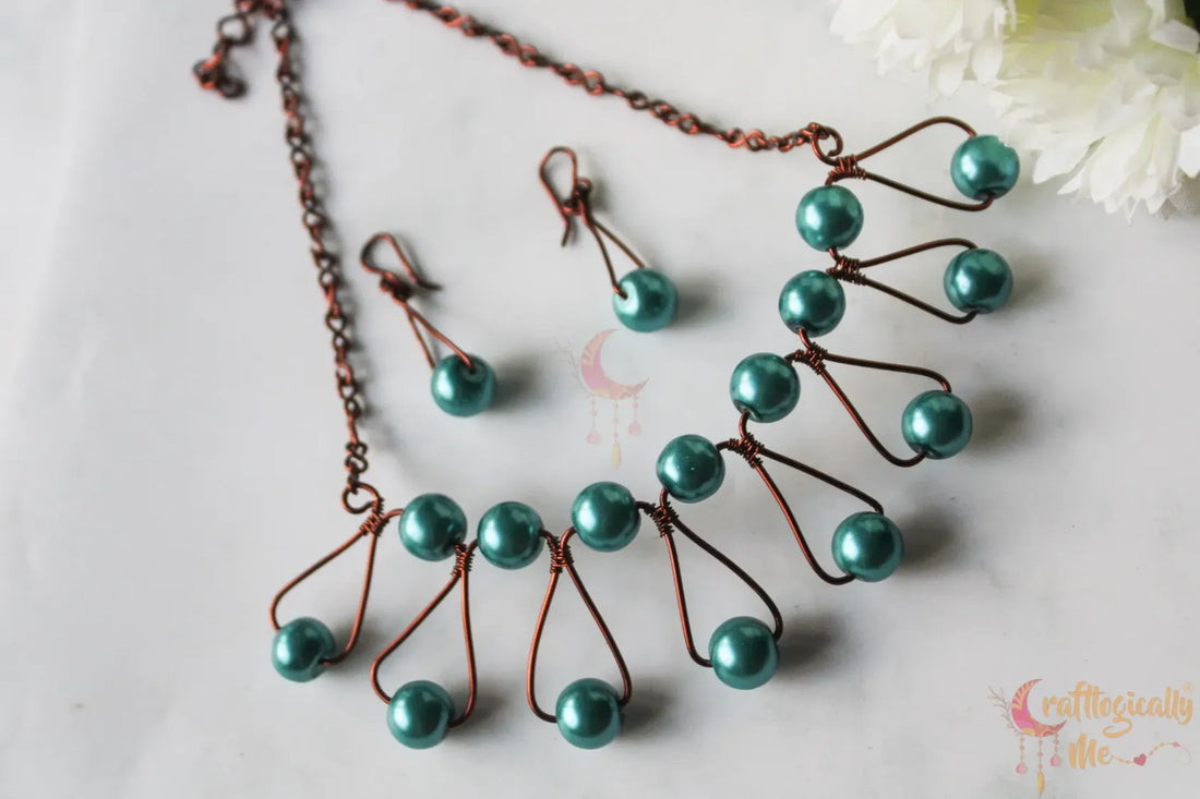 Pearl Bead Zigzag Choker Set, Earrings And Pendant Combo – Handmade Wire Jewelry