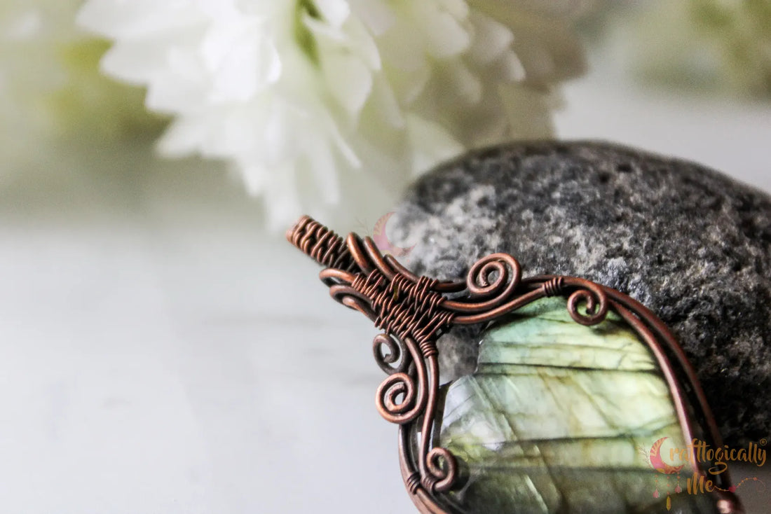 Labradorite Gemstone Drop Heart Swirls Pendant – Handmade Anti-Tarnish Copper Wire Wrapped Jewelry