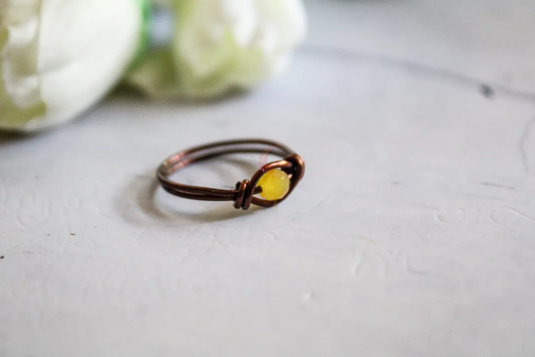 Snake Ring with Beads – Handmade Wire Wrapped Adjustable Ring