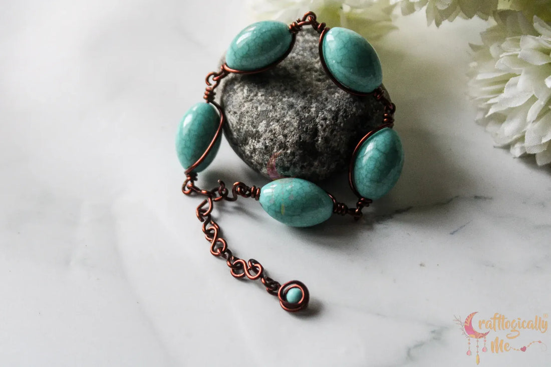 Turquoise Blue Marquee Bead Bracelet – Handmade Wire Jewelry