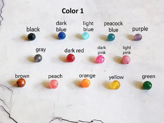 - Handcrafted wire loops with dangling agate beads