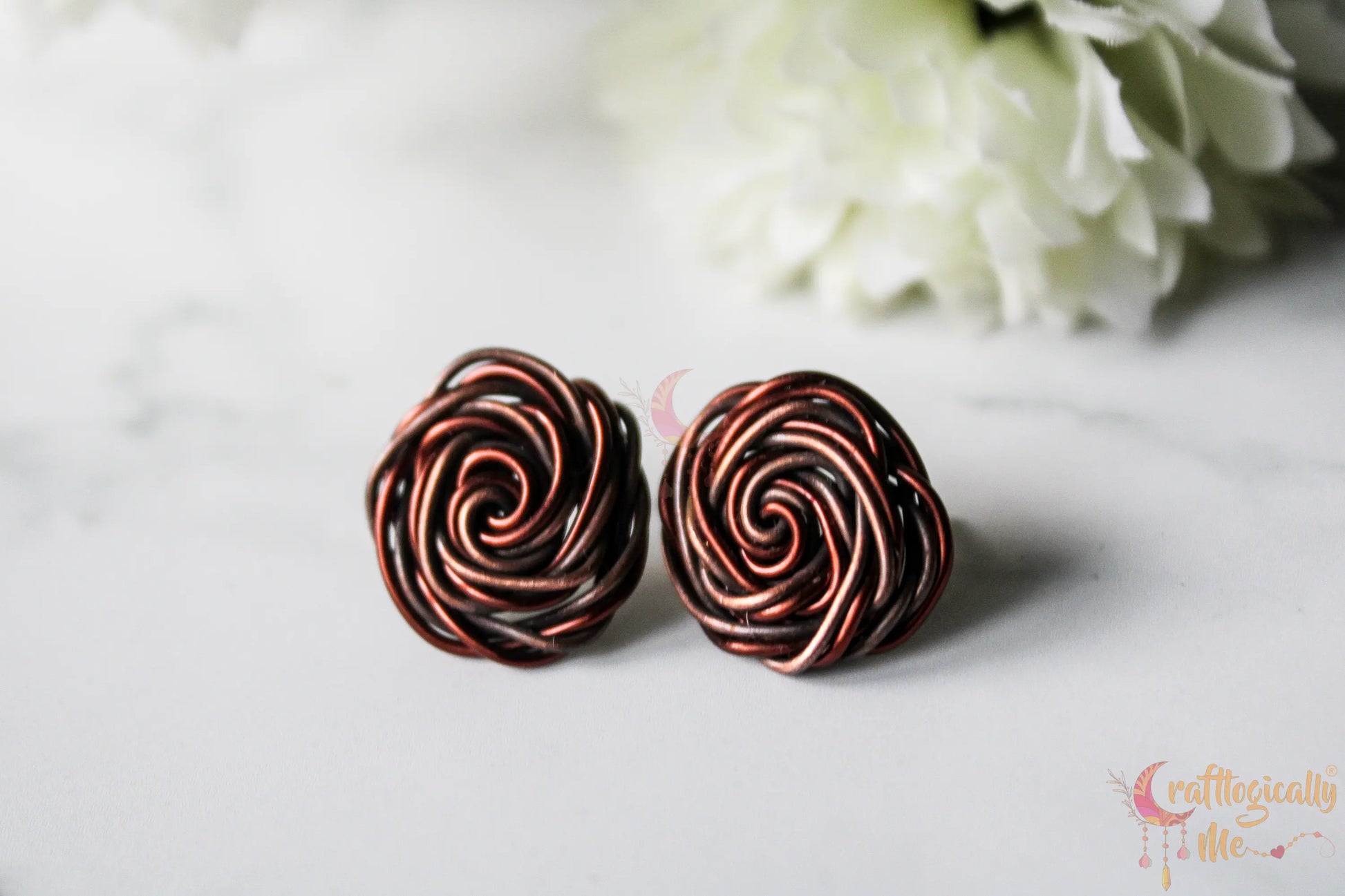 Big Rose Studs – Anti-Tarnish & Oxidized Copper Handmade Earrings