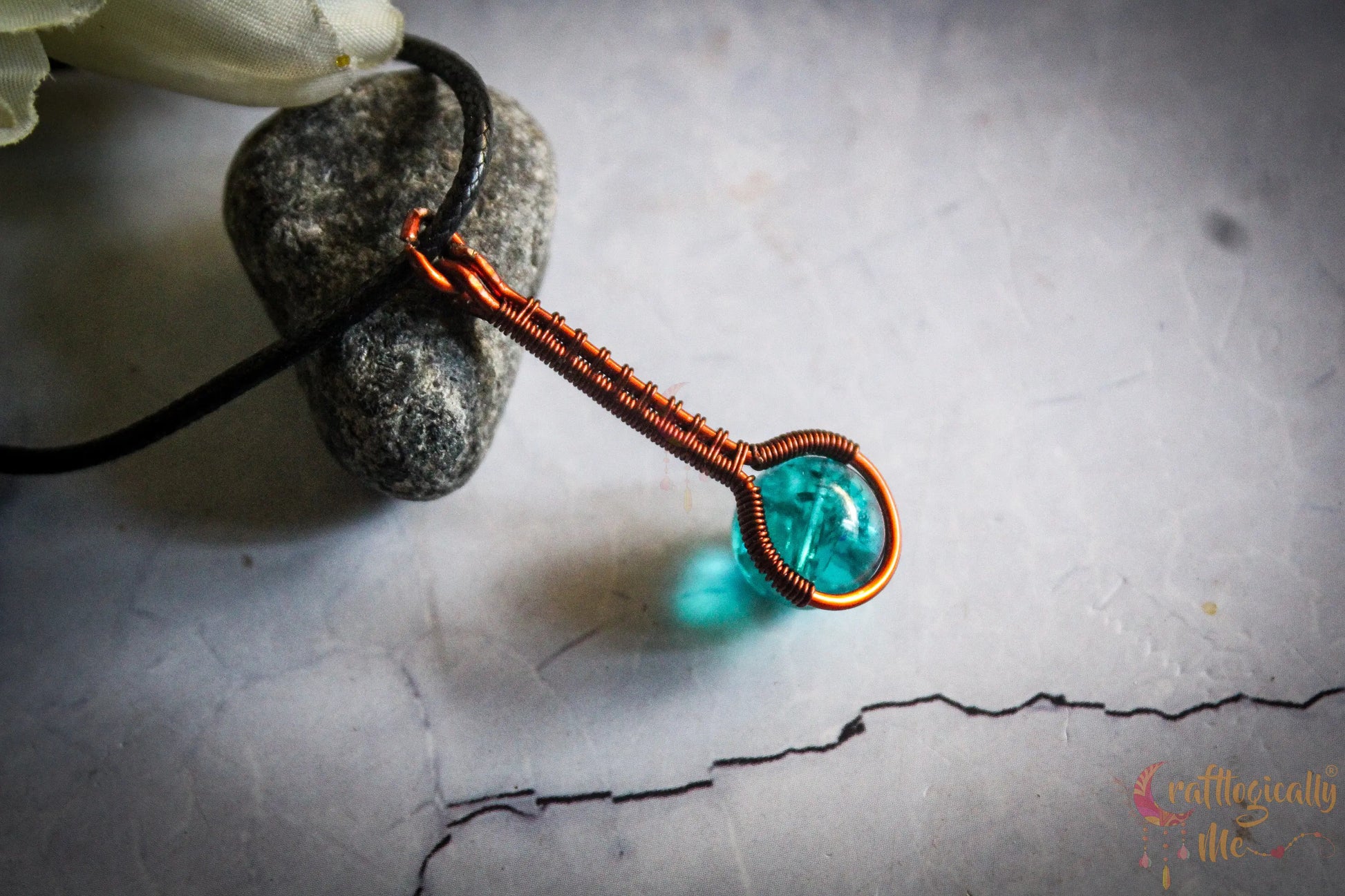 Crackle Bead Woven Pendant – Handmade Wire Wrapped Jewelry
