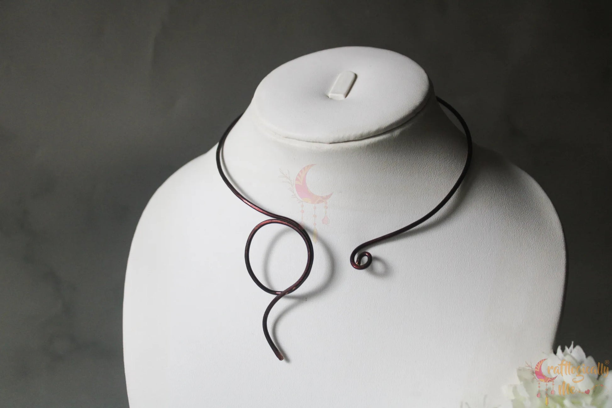 The Curly Wire Collar features free-flowing wire curls that create a bold yet graceful silhouette. Designed to sit comfortably around your neckline, it brings movement and artistic energy to your outfit.