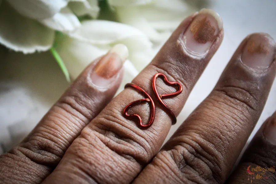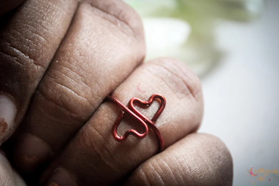 Double Hearts Ring – Handmade Wire Wrapped Adjustable Ring (3 Unique Designs)