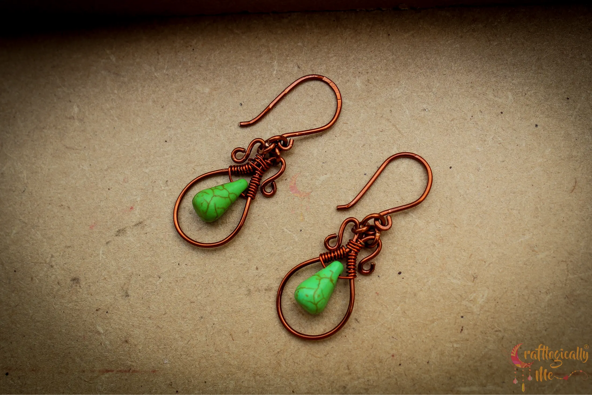 Drop Bead with Flourish Earrings – Handmade Wire Wrapped Dangle Jewelry