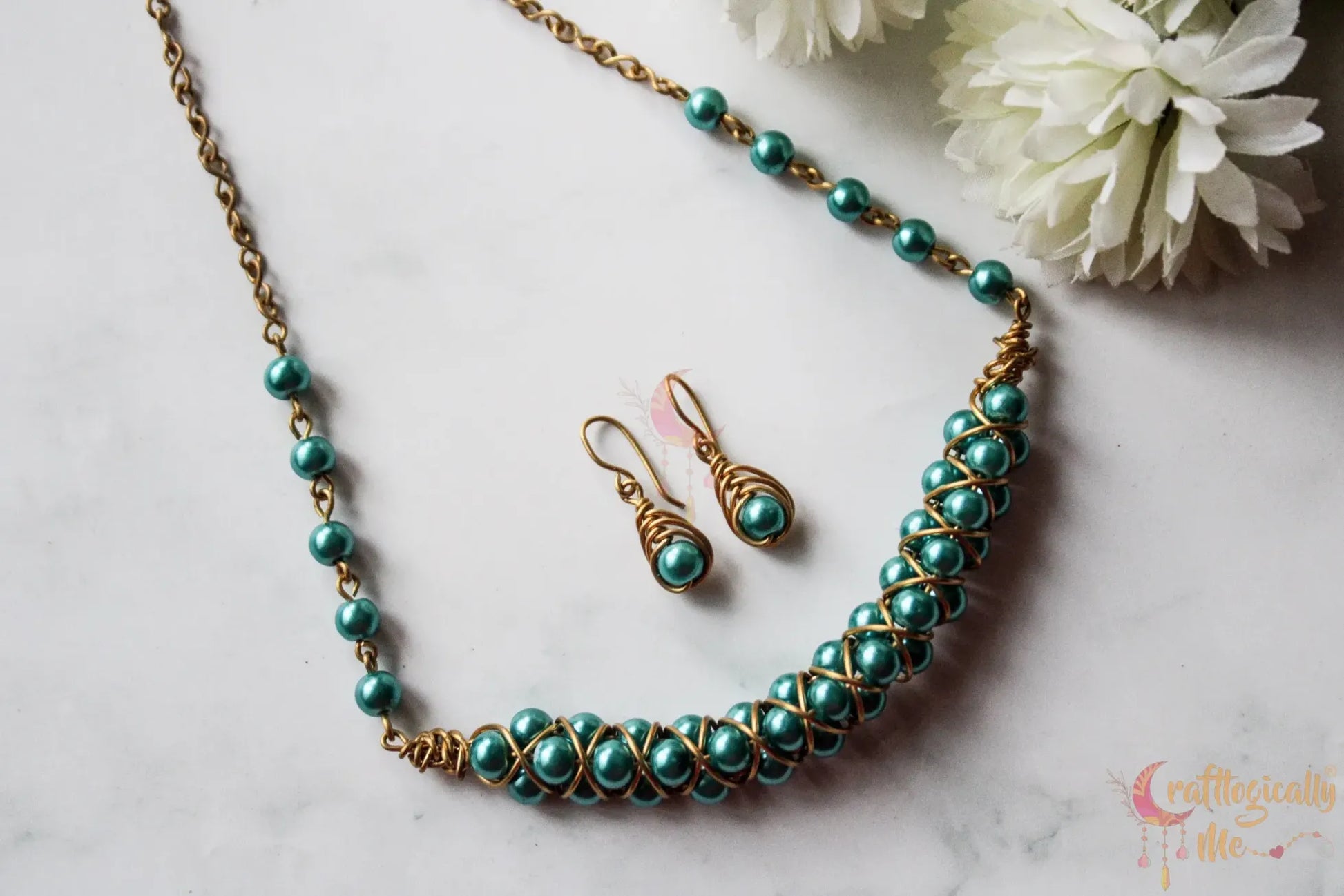Pearl Braided Choker Set, Earrings and Necklace Combo – Handmade Wire Jewelry