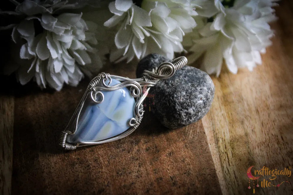 Silver Blue Opal Gemstone Drop Wrap Pendant – Fine Silver Handmade Jewelry