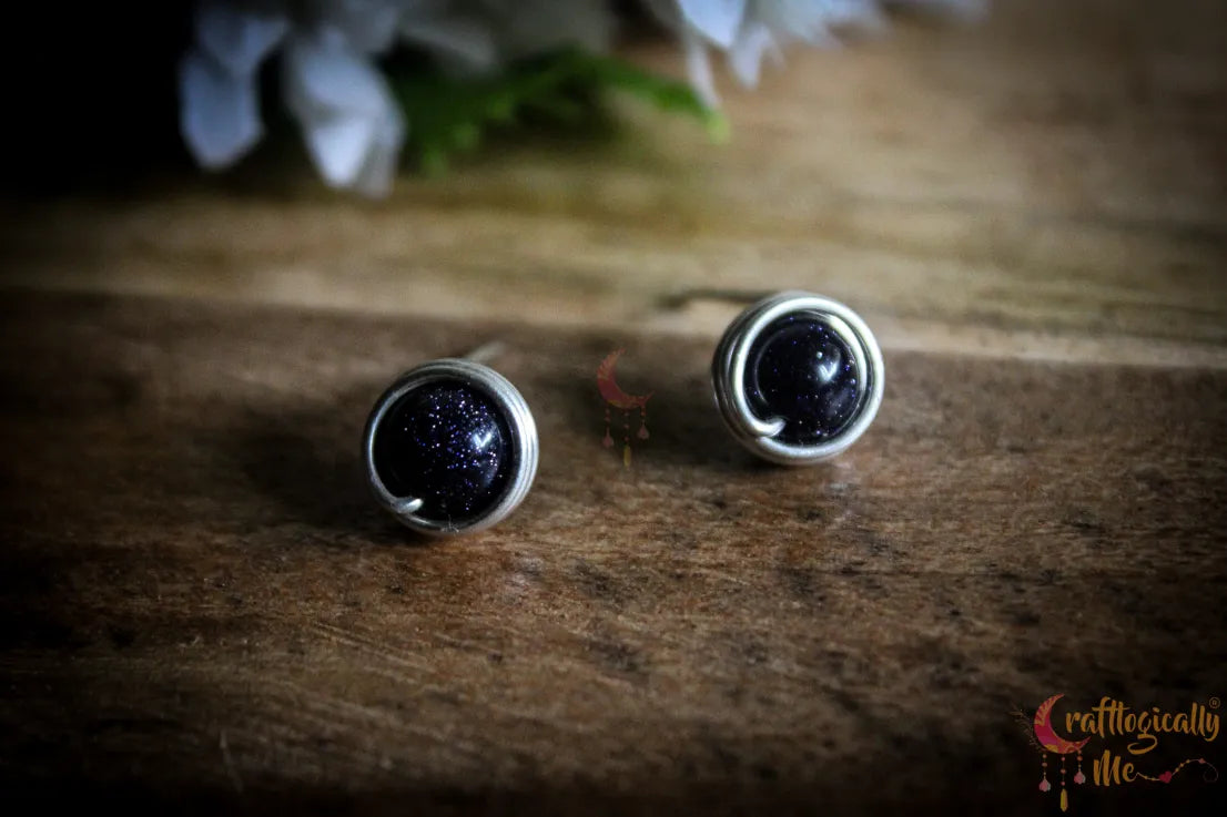 The Silver Blue Sandstone Bead Wrap Stud Earrings bring a touch of midnight shimmer to your look. Handcrafted in fine silver, these studs feature mesmerizing blue sandstone beads, known for their subtle sparkle and calming energy. Their minimal wrap design blends elegance with simplicity, making them perfect for both casual and festive wear.