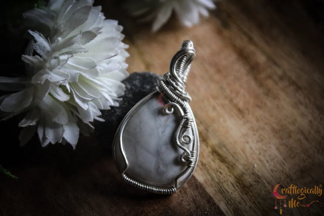 Silver White Agate Gemstone Drop Wrap Pendant – Fine Silver Handmade Jewelry